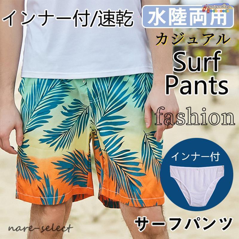 水着 メンズ サーフパンツ 花柄 水陸両用 軽量 速乾 海パン インナー付 海水パンツ ショートパンツ 無地 アロハ 夏物 短パン 大きいサイズ