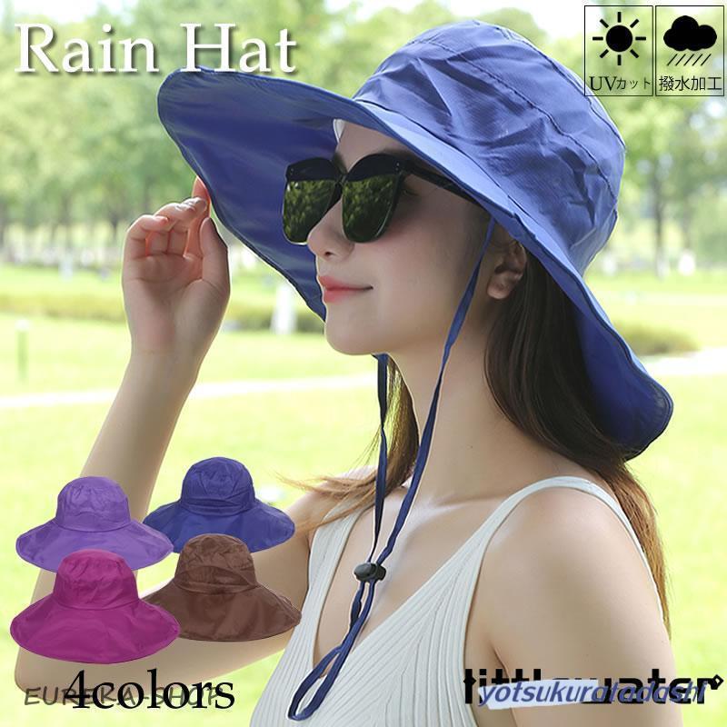 レインハット 雨用帽子 レディース 雨よけ 防水 自転車通勤 UVカット UV 日よけ帽子 つば広 折りたたみ 紫外線対策 あご紐付き コンパクト