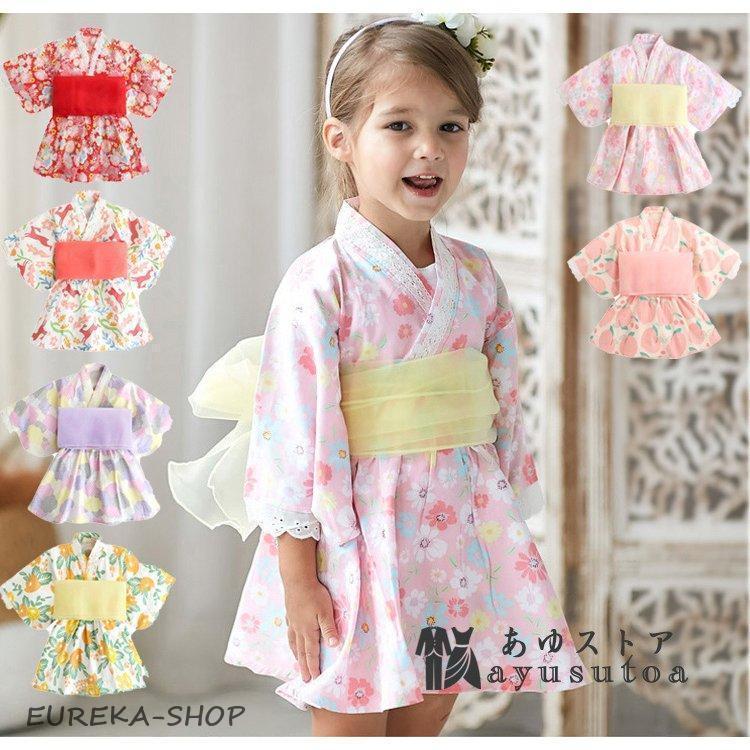 2点セット 浴衣ドレス+帯 浴衣セット 子供浴衣 6カラー ふわふわ ゆかた こども用 子ども こども ゆかたドレス 90cm 100cm 110cm