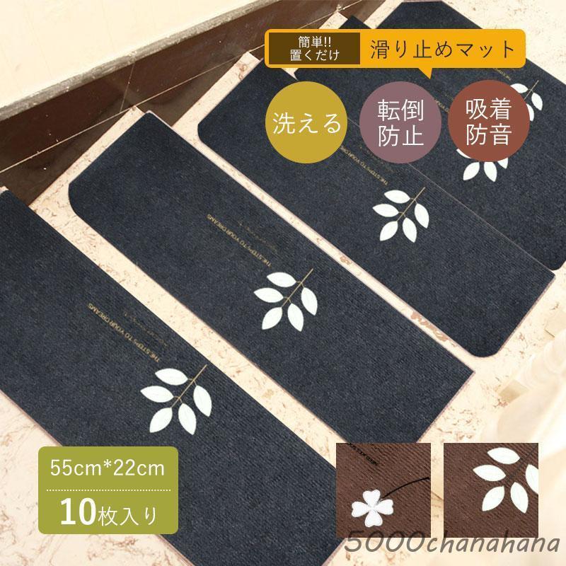 階段マット おしゃれ 階段 滑り止めマット 折り曲げ 10枚セット 階段蓄光マット カーペット 防音 傷防止 滑り止め 吸着 足冷え 水洗い 転倒防止