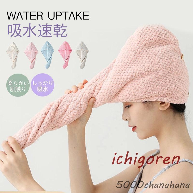 お風呂上がり後に服を濡らすことなく、髪の水分を吸収してくれる便利なタオルキャップです。
