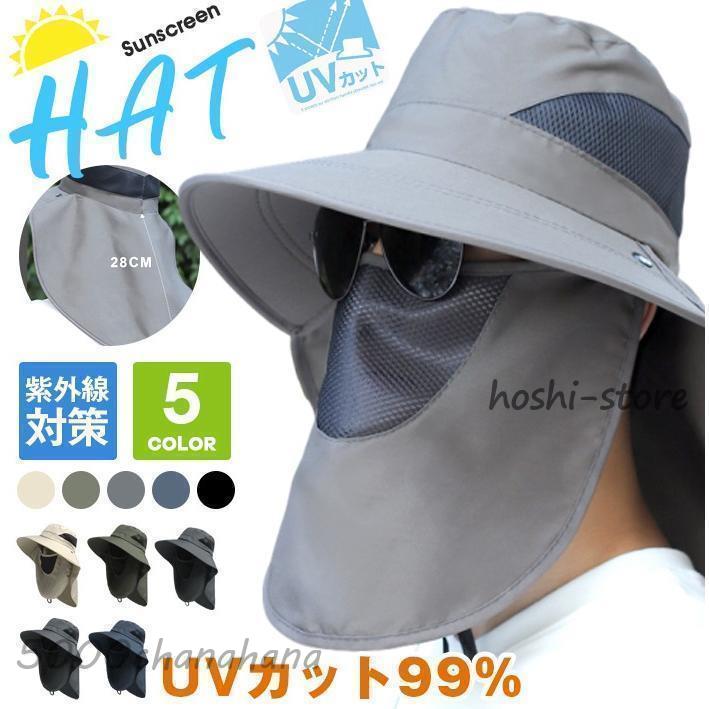 サファリハット ゴルフ バケットハット 帽子 メンズ レディース 男女兼用 フェイスカバー メッシュ 通気性 あご紐付 UVカット 紫外線対策