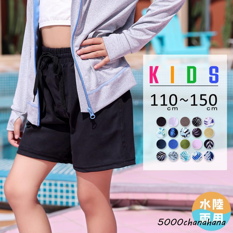 水着 キッズ 女の子 男の子 男女兼用 夏 サーフパンツ 水陸両用 ウエスト調節 裏地 無地 ボタニカル柄 紐 プール 海 黒 白