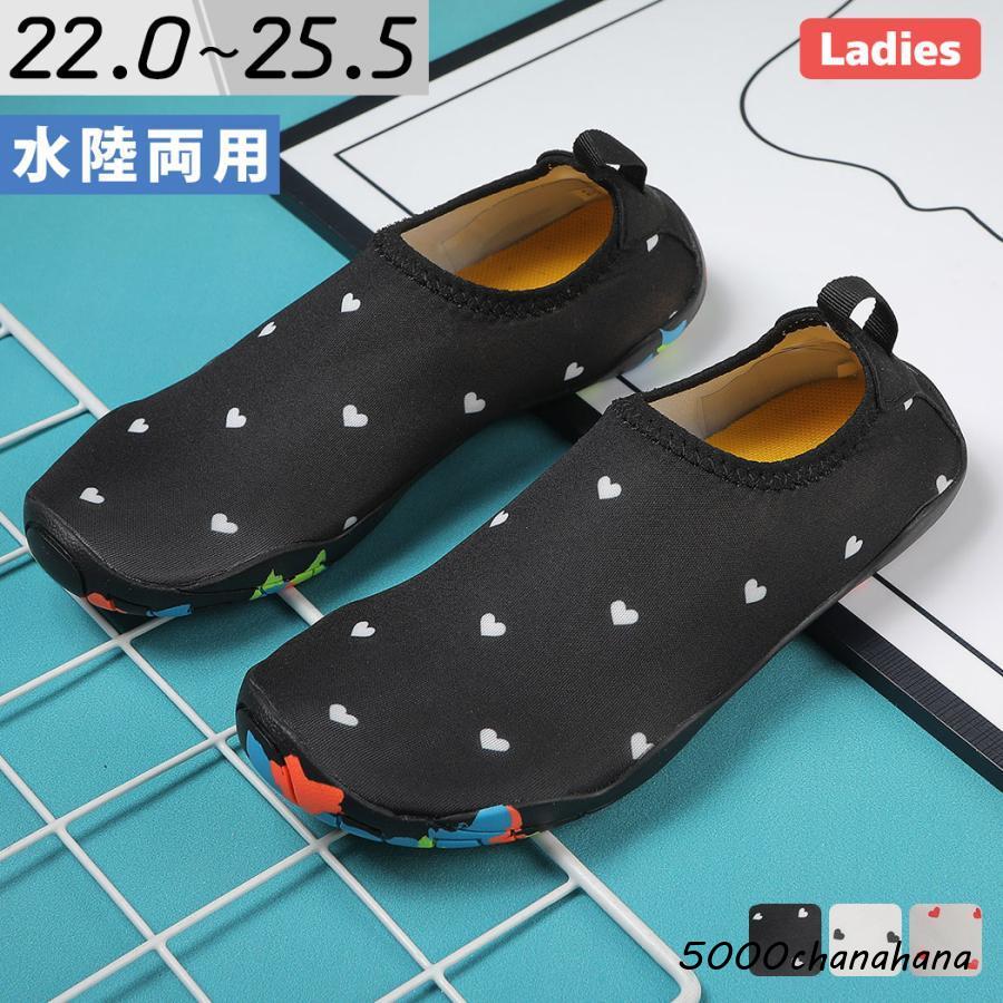 マリンシューズ レディース 女性用 水陸両用 ハート柄 岩場 アクアシューズ 靴 海水浴 軽量 アウトドア おでかけ 散歩 外履き 夏 海 プール