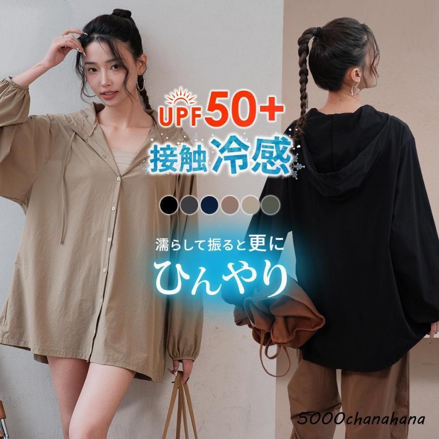 ラッシュガード レディース水着体型カバー 接触冷感 UVカット率 99%以上 フード付き おしゃれ 長袖 ロング丈 紫外線対策 UPF50+ 接触冷感 ひんやり 大人 かわいい ママ ゆったり オーバーサイズ 夏 黒 パイピングカフス 二の腕 ウエスト ヒップ カバーアップ