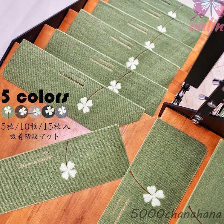 階段マット 吸着 蛍光 滑り止め 折り曲げ 防音 四つ葉柄 おしゃれ 蓄光式 足冷え 介護 高齢者 転倒防止 洗える キズ防止 5/10/15枚組 おくだけ吸着 ずれない 5色