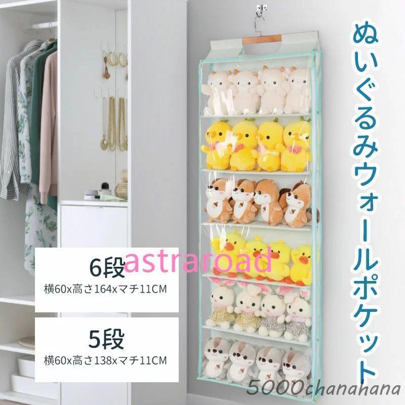 ぬいぐるみウォールポケット ウォールポケット 5段/6段収納ケース ディスプレイ コレクションケース 収納ボックス コレクション 収納 見せる収納 小物