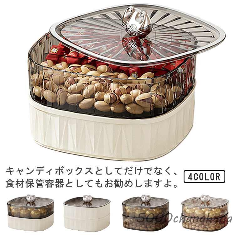 防湿 お菓子 2層 収納ボックス フルーツトレイ 大容量 蓋付き スナックボックス 食品保存容器 プラスチック キャンディーボックス 仕切り おしゃれ