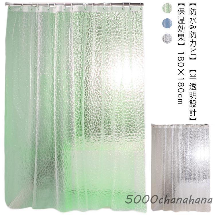シャワーカーテン 180×180cm おしゃれ 透明 バスカーテン 防カビ 防水 バスルーム カーテン 浴室 お風呂 洗面所 間仕切り 目隠し用 取付