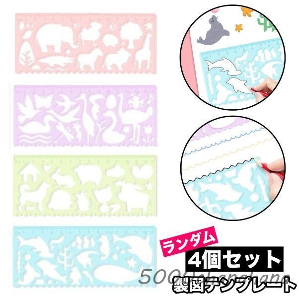 製図テンプレート お絵描き定規 4個セット ランダム 文房具 多機能定規 描画テンプレート デザイン ステンシル 絵図 デッサン