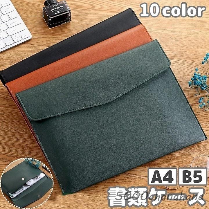 書類ケース ドキュメントケース ファイルケース A4 B5 レザー調 横型 持ち運び 書類入れ ビジネス スリム 薄型 マグネットボタン 無地 シンプ