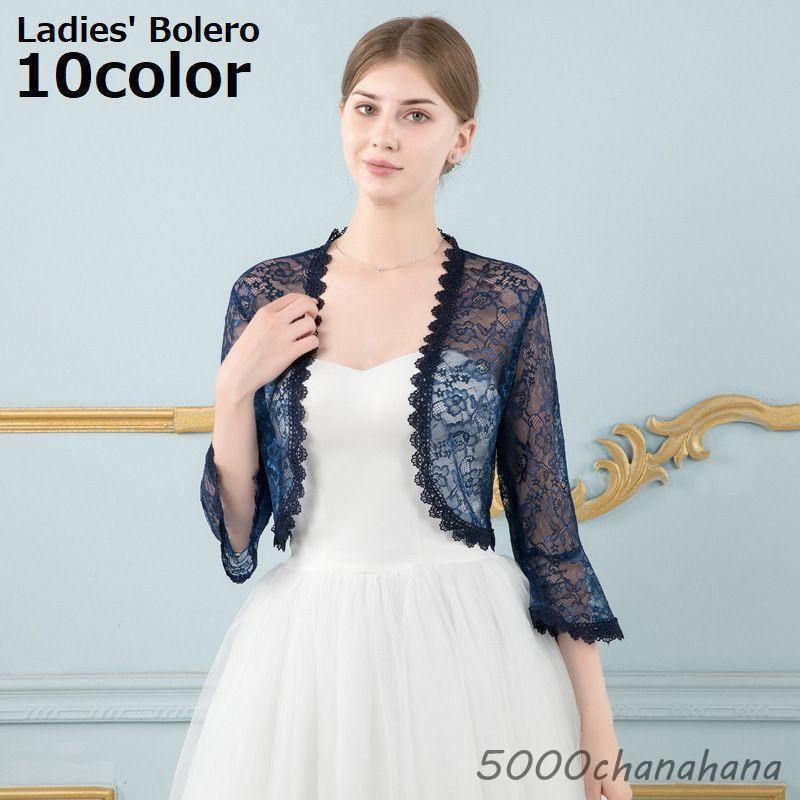 ボレロ カーディガン 羽織 レディース 7分袖 花柄 総レース 上品 フォーマル パーティードレス 結婚式 お呼ばれ