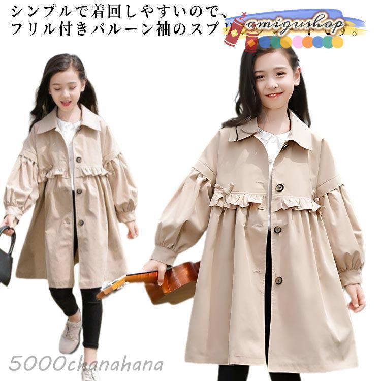 バルーン袖 女の子 スプリングコート 子供 子供コート 薄手 キッズ 通園 秋アウター 春アウター 140 子供服 トレンチコート フォーマル ロング