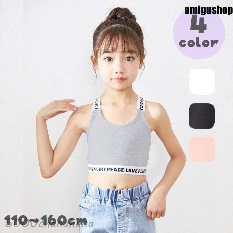 ジュニアブラ スポーツブラ 子供用 キッズ 下着 ブラジャー 無地 英字ロゴ シンプル 小学生 中学生 ハーフトップ インナー 肌着 白 黒 グレー