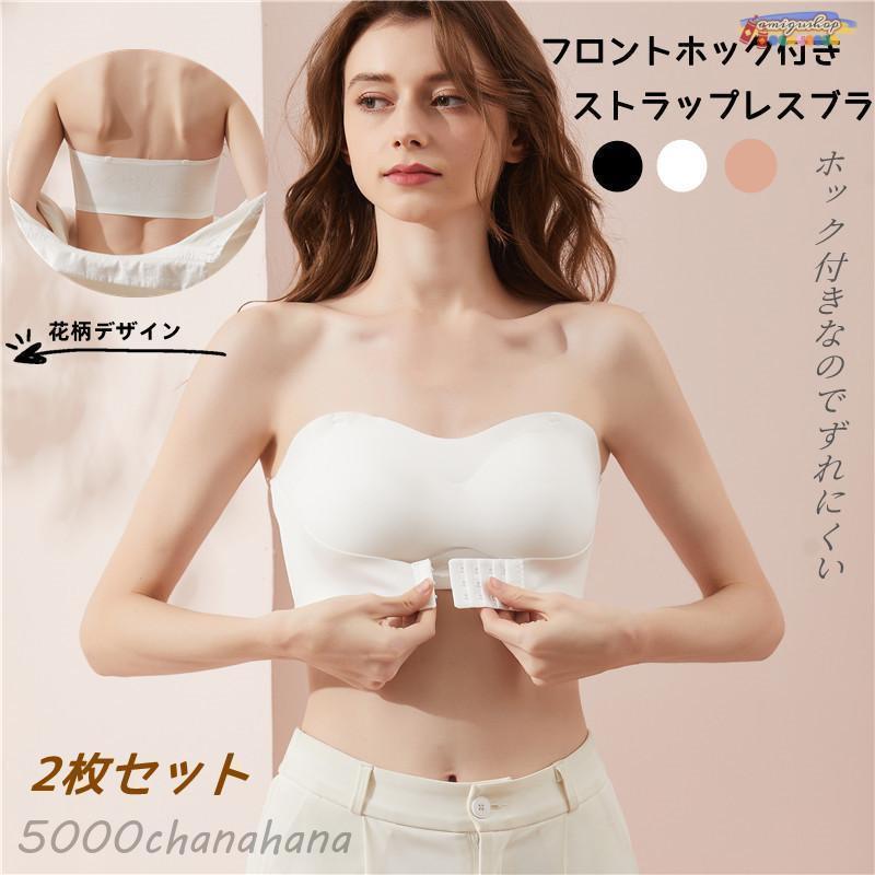 ストラップレスブラ 盛れる 落ちない 2枚セット 肩紐なし チューブトップ ストラップレス ブラ ずれない ブラジャー ノンワイヤー シームレス フロントホック