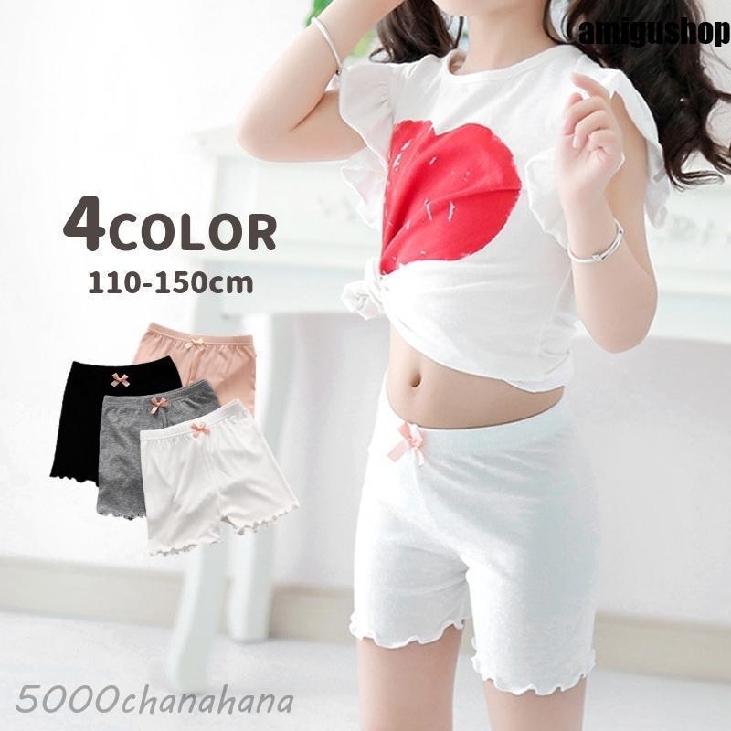 インナーパンツ 3分丈 ペチパンツ ペチコート 下着 キッズ 子供 女の子 メロウフリル 見せパン ガールズ 肌着 リボン 無地 単色 シンプル かわ