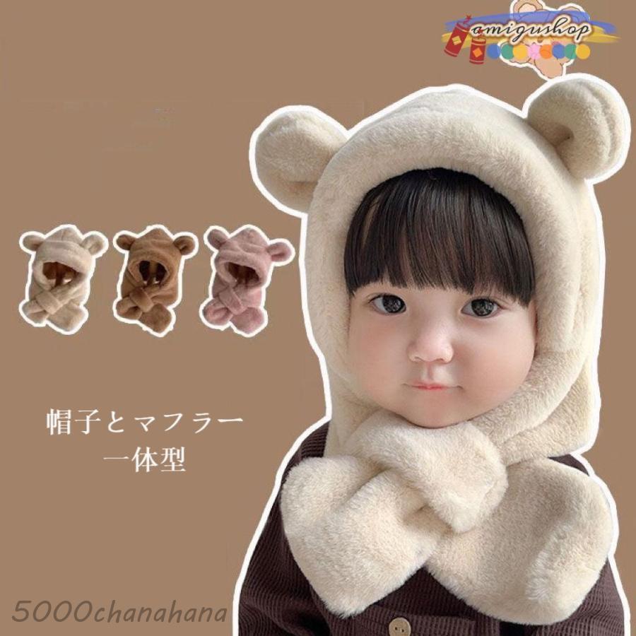 帽子 マフラー キッズ 一体 ベビー イヤーマフ フード ティペット 付き 冬 防寒 フードウォーマー 子供 耳付き 男の子 女の子 一体型 くま く