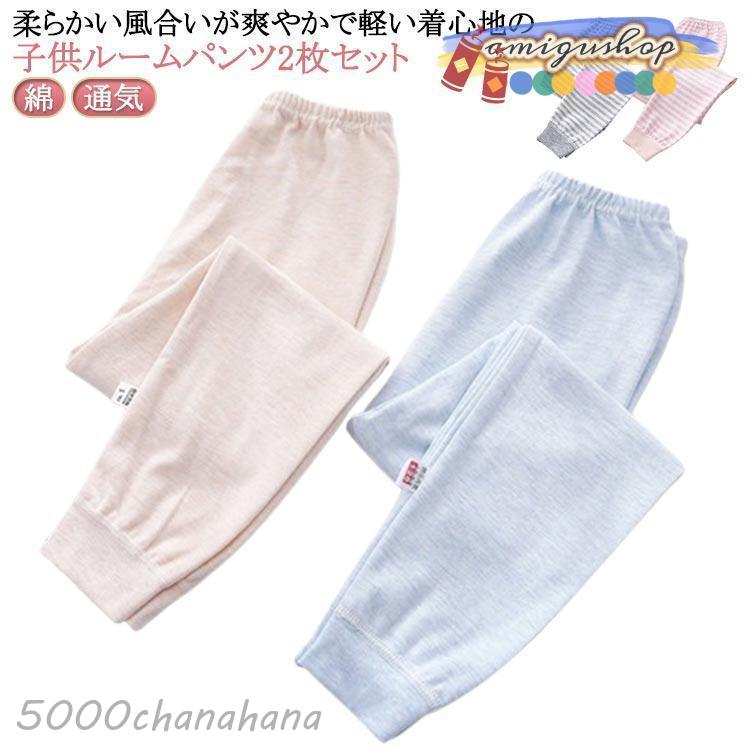 ルームパンツ キッズ 男の子 女の子 綿 パジャマ 2枚セット 子供 春秋 冬 ボーイズ ガールズ ジュニア 部屋着 ルームウェア ロングパンツ ウエ