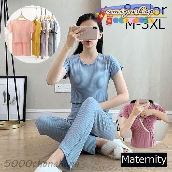 パジャマ マタニティ レディース 妊婦 ママ 部屋着 ルームウェア 授乳服 上下セット 授乳口付き 産前 産後 2点セット 出産 妊娠 半袖 ロングパ