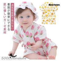 ベビー 甚平 ロンパース 浴衣 男の子 女の子 一歳 ベビー服 夏 半袖 前開き カバーオール 綿 ガーゼ 夏服 赤ちゃん 可愛い かわいい おしゃれ