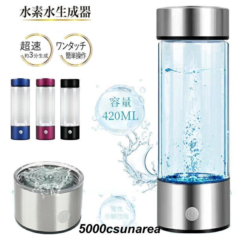 携帯用浄水器 水素水生成器 水素水ボトル高濃度水素水生成器LEDライプ付き420ml ポータブル 生成器ウォーター ボトル イオナイザーメーカー コップ 家庭 旅行