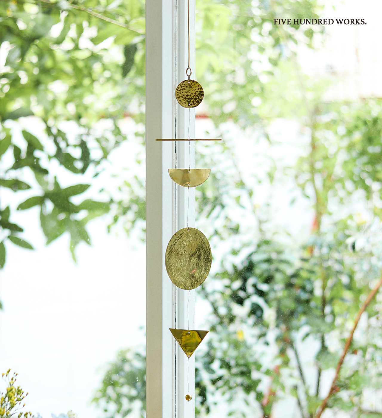 丸や三角などのモチーフをつなげたマルチタイプ。風合いあふれる鎚目(つちめ)模様は ハンドメイドならではの魅力の一つ。無塗装仕上げのため黒くくすんでいきますが、経年変化として時間の経過をお楽しみください。ちょっとしたプレゼントにも嬉しい大人のガーランドです。バード・ムーン・マルチの3タイプご用意しています。