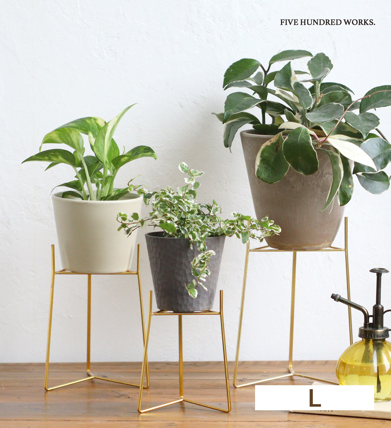 ゴールドのラインが印象的なポットスタンド。幅広いインテリアに馴染むシンプルなデザイン。ポットを直置きするよりも高級感のある印象に。サイズはS、M、Lの3サイズ。サイズ違いを並べて飾るのもおすすめです。