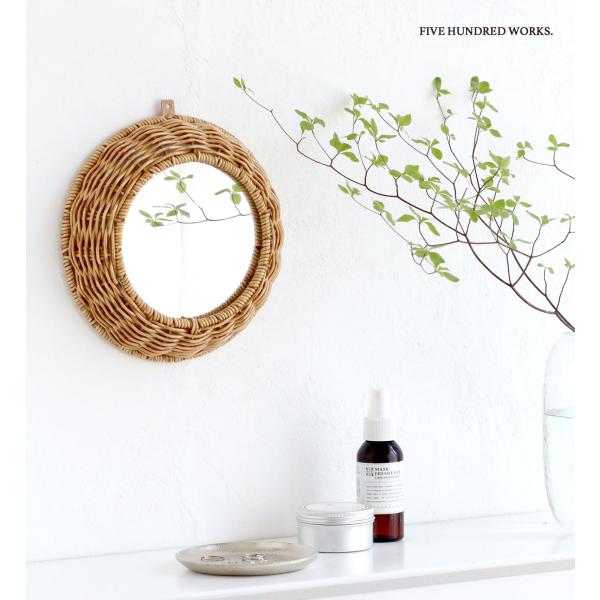 天然素材で編まれたような自然な温かみのあるPPラタンで編み上げたラウンド型ミラー。かご編みのデザインがどこか懐かしく、どんなテイストのインテリアにも馴染んでくれます。お出掛け前のチェックに使いやすい直径20cmの程良いサイズ感。壁掛け用の穴も付いており、重さも約200gと軽量なので、市販のフックで簡単に取り付けられます。水に強いポリプロピレン・ポリエチレンチューブを使って編まれているので、お手洗いやバスルームなど、水を扱う場所でも安心。アクリル製のミラーなので落としても割れにくく、安全にご使用いただけます。実用的でありながら、空間のアクセントとしても使えるミラーです。