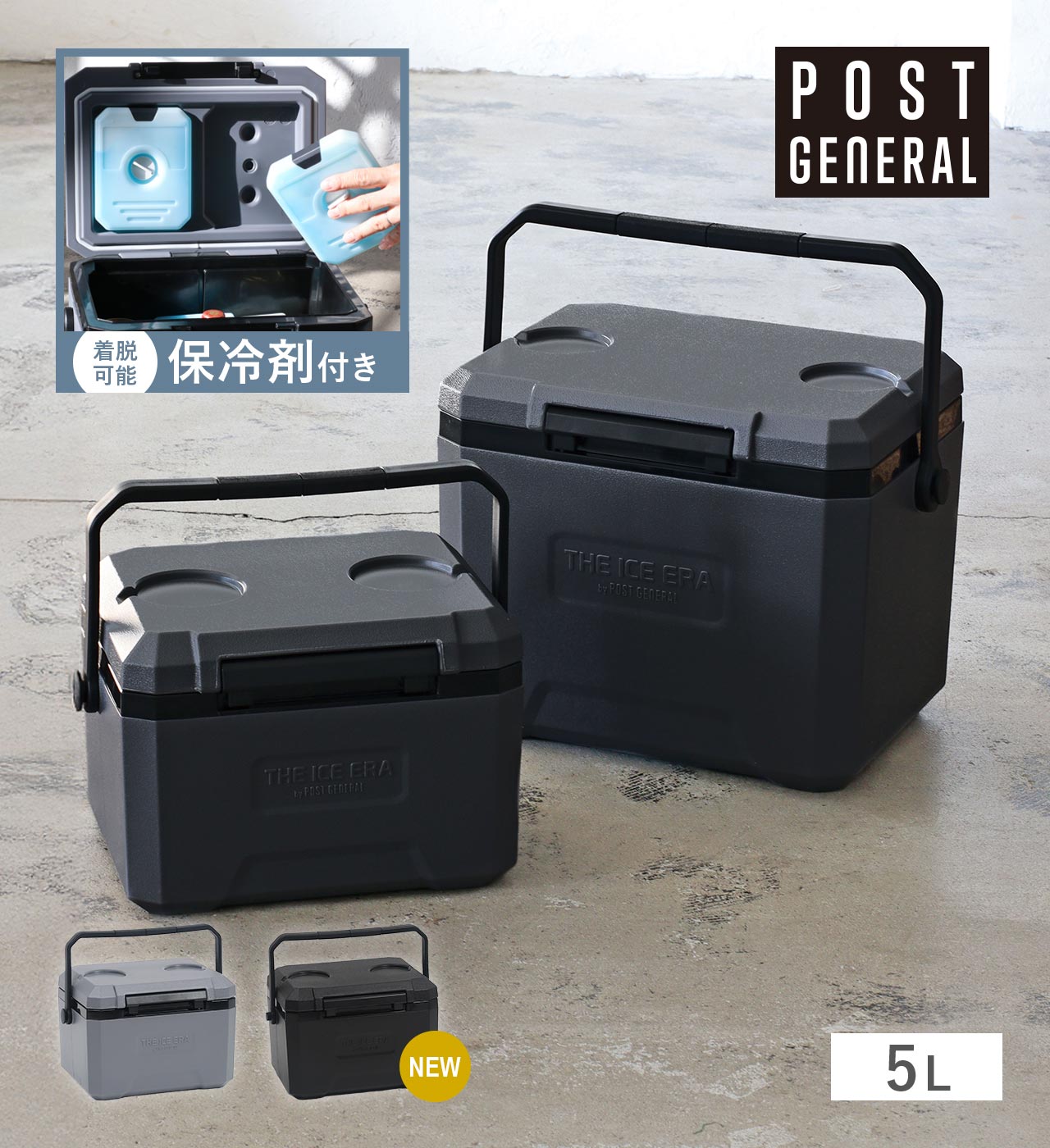 蓋裏面に取り外し可能な保冷剤が付属した機能性クーラーボックス。蓋の裏面から冷気が下がり、効率的に庫内を保冷できます。5Lサイズのクーラーボックスは、350ml缶が縦置きで6本、ペットボトルや500ml缶は横に寝かせて4本収納できるインナーサイズです。クラブなどの野外活動で1人分のお弁当や飲み物などの保冷に最適なパーソナルクーラーとしてお勧めです。12Lサイズのクーラーボックスには500ml缶、ペットボトルが縦置きで10本収納できます。蓋の表面にはドリンクホルダーが付いており、キャンプなどのアウトドアシーンでは簡易のテーブルとしてもお使いいただけます。
