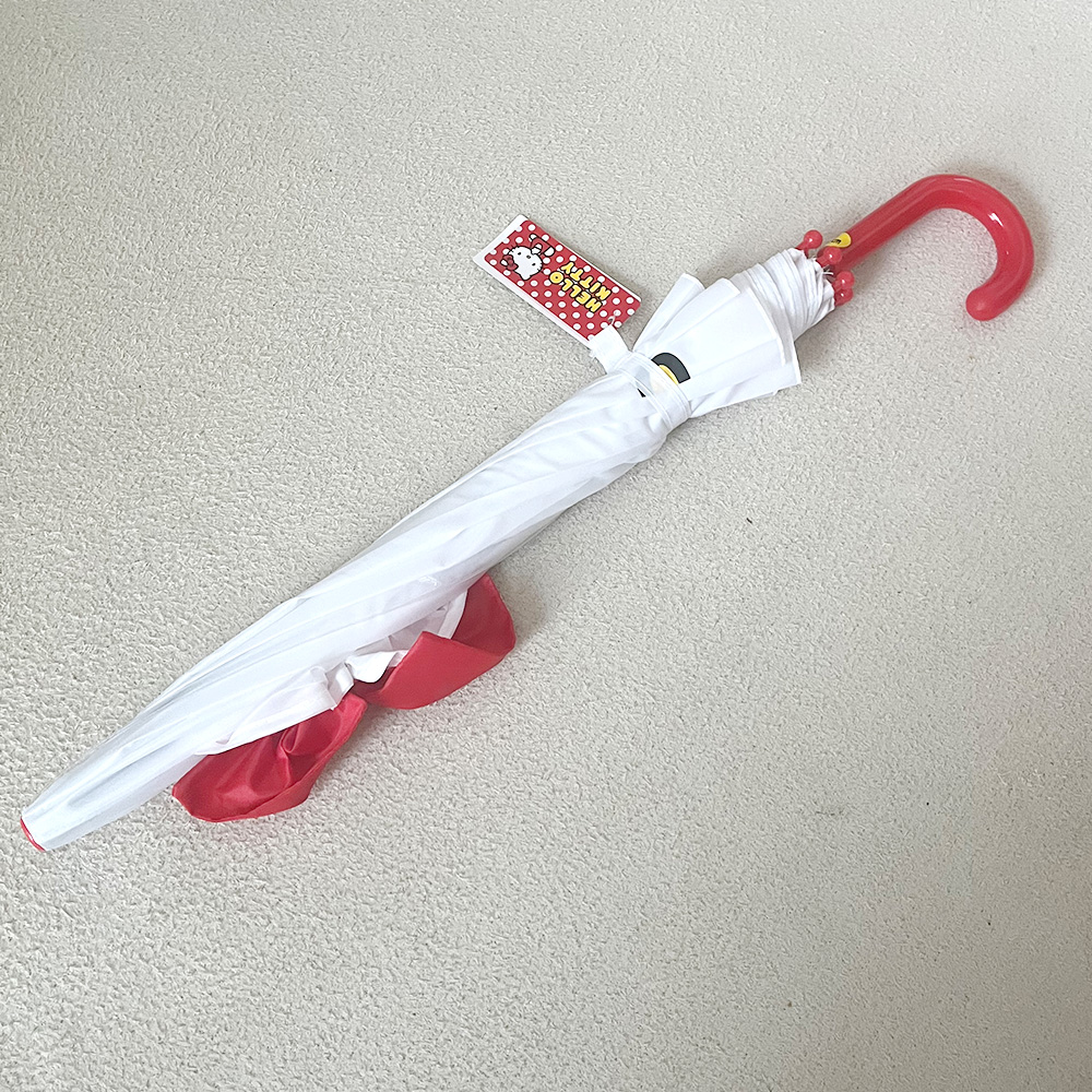 キティちゃんの耳がリボン大きくデザインされたかわいい傘です。