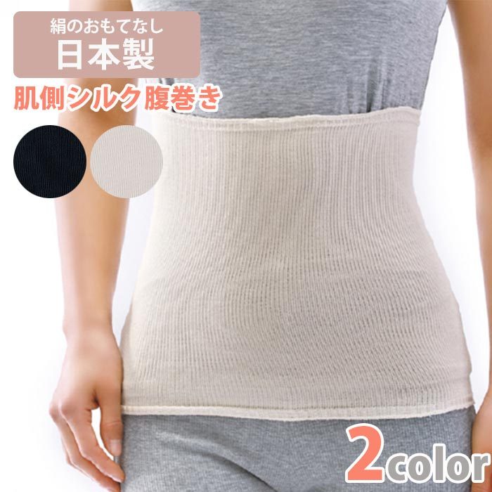 日本製 絹のおもてなし シルク腹巻き ホワイト ブラック コットンとシルク mi07 爆買