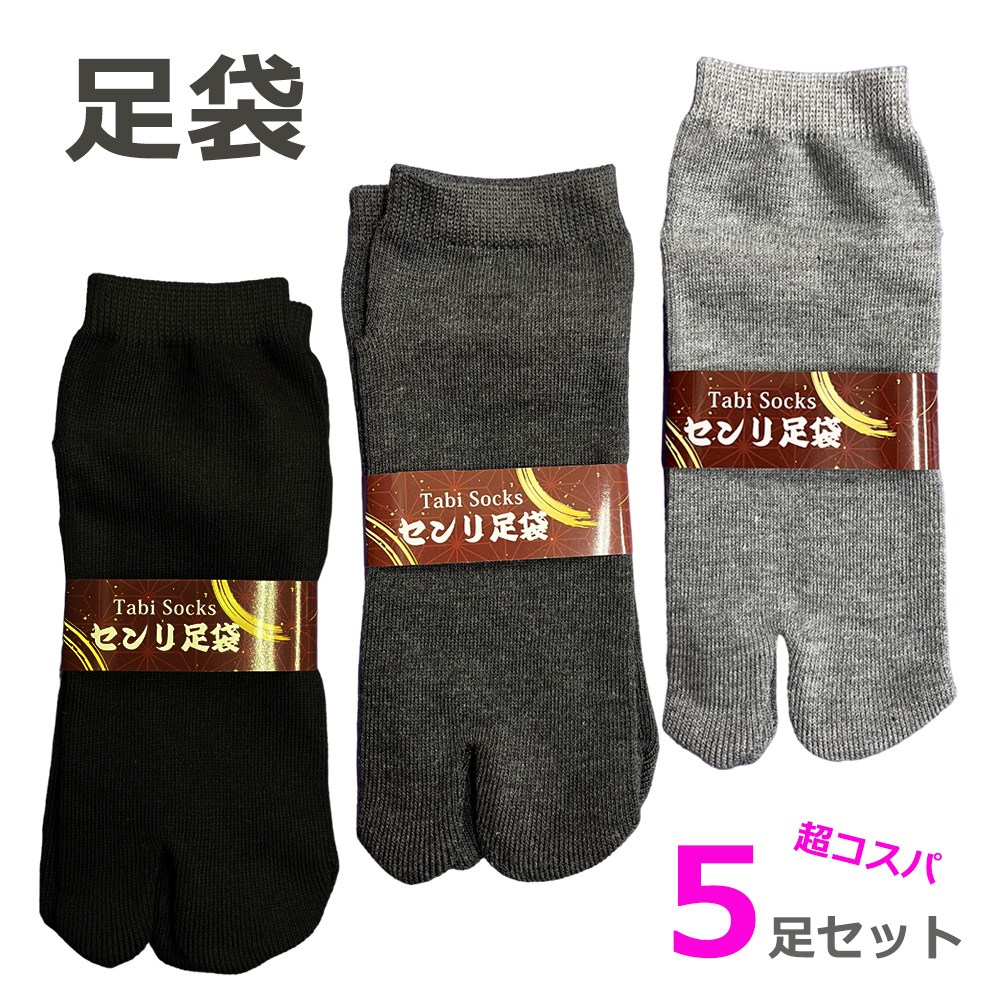足袋靴下 メンズ 5足セット 二股 足袋ソックス メンズ レディース 足袋タイプ ソックス 送料無料 zakka143 対応サイズ23-28cm センリ足袋