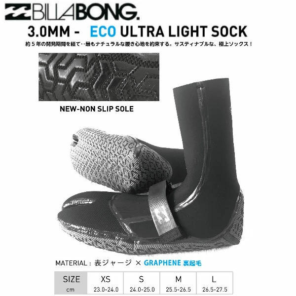 BILLABONG ビラボン 2023 サーフブーツ ECO ULTRA LIGHT SOCK メンズ レディース ウェットスーツ セミドライ WETSUITx 裏起毛 XS/S/M/L 3mm 【あす楽対応】