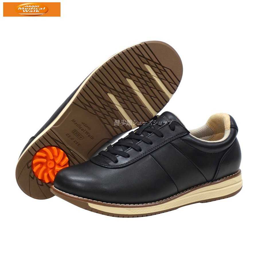 アサヒ メディカルウォーク レディース 靴 ウォーキングシューズ WK L037 ブラック KV78533 3E 天然皮革 レザースニーカー