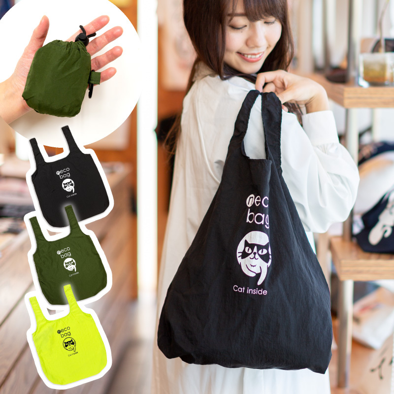 普段はバッグの片隅にコンパクトに収納しておき、いざお買い物の際にびろ〜んと広げて颯爽とネコバッグ登場!そんな使えるネコバッグです。