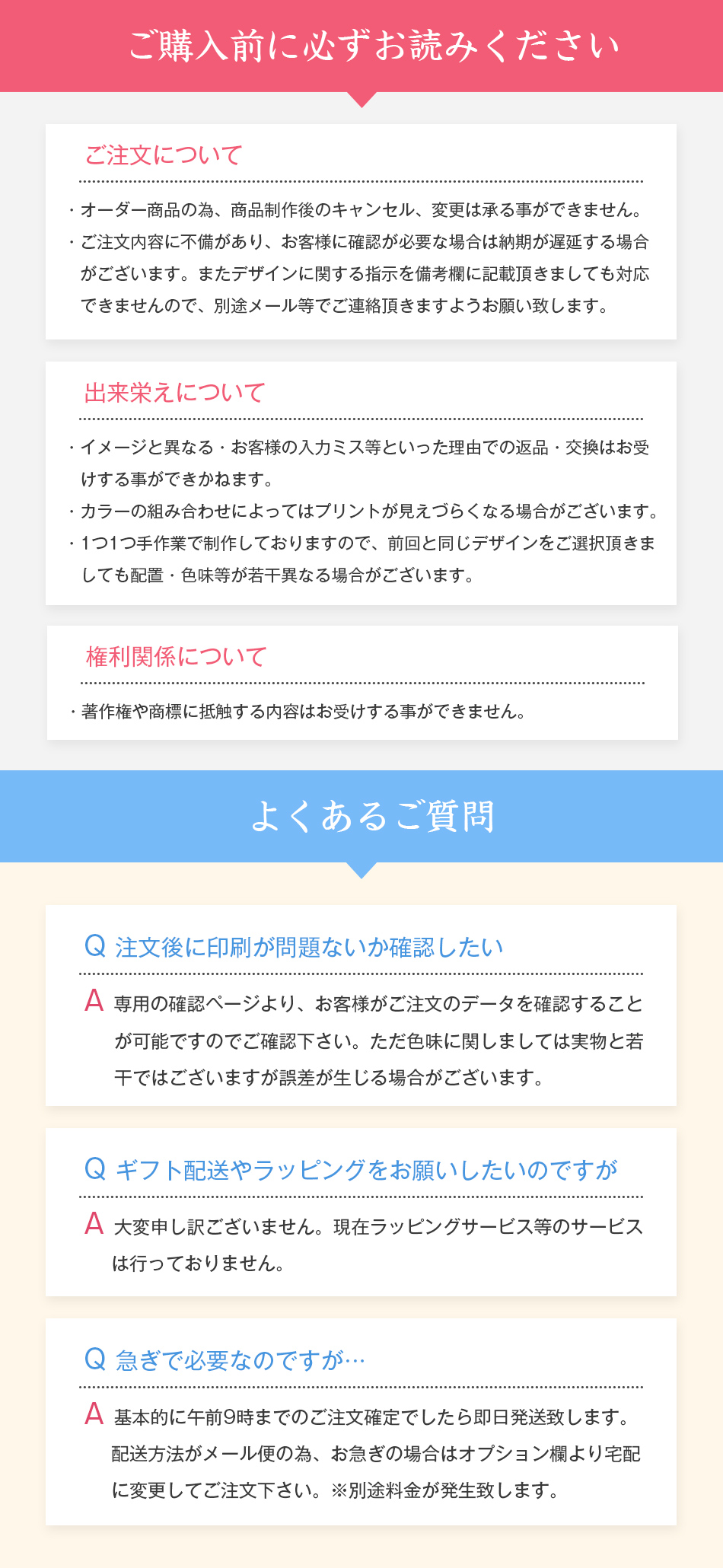 ※プリント制作後の商品は初期不良を除き、如何なる場合でも返品、交換を承る事が出来かねます。