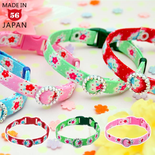【グリーン】緑色で花柄の首輪って、探すと案外ないんです!可憐な印象に仕上がりました。