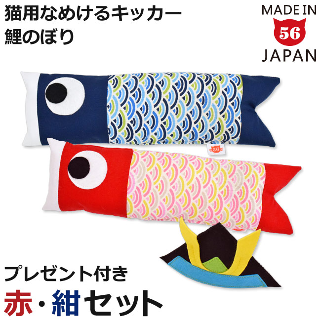 ゴロにゃんオリジナル なめけるキッカー 鯉のぼり 赤・紺2点セット フェルト製かぶとプレゼント付き