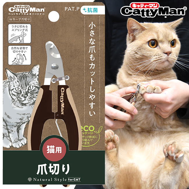 ナチュラルスタイル 猫用 Wカーブ爪切り小さな爪もカットしやすい。定期的なお手入れに!手首の負担を軽くするWカーブ形状&小さな爪もラクに切れるスプリング式。