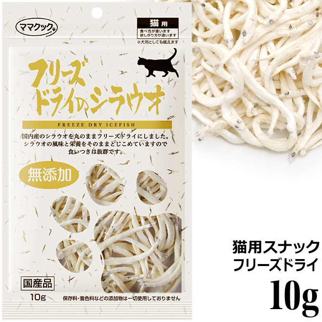 高級魚として扱われている新鮮な国内産のシラウオを、そのままフリーズドライにした猫用おやつです。