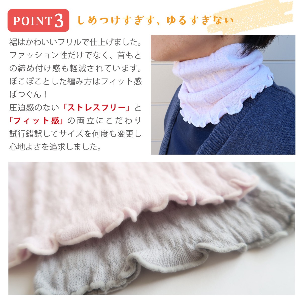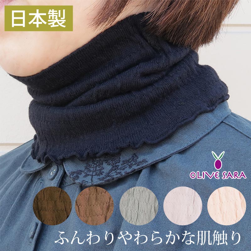 オリーブオイル加工を施すことで、チクチクしないふんわりやわらか肌ざわりを実現した「新感覚のネックカバー」が、あなたの首元を紫外線からやさしく守ります。