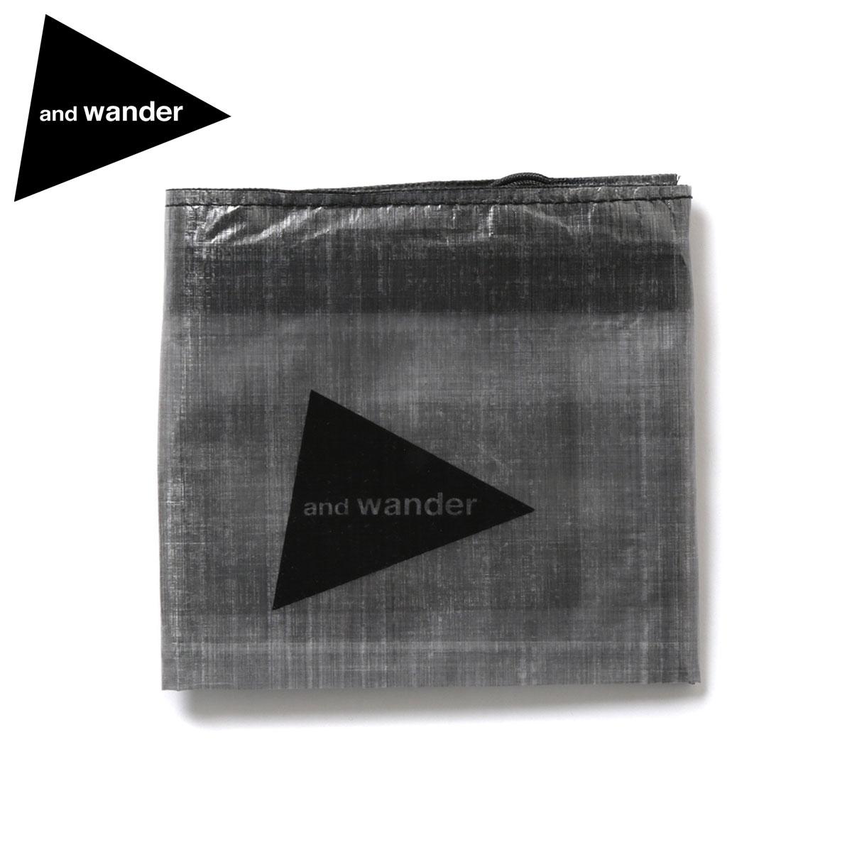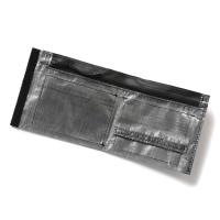 「and wander / アンドワンダー | UL wallet with Dyneema - Charcoal」DSM社のダイニーマコンポジットファブリック (旧キューベン・ファイバー) を使用した財布。ダイニーマ繊維をUV樹脂でラミネートした極薄のフィルム状のダイニーマ コンポジットファブリックは、レーシングボート用の高機能セイルなどに使用され、超軽量で高い防水性と引裂強度があります。