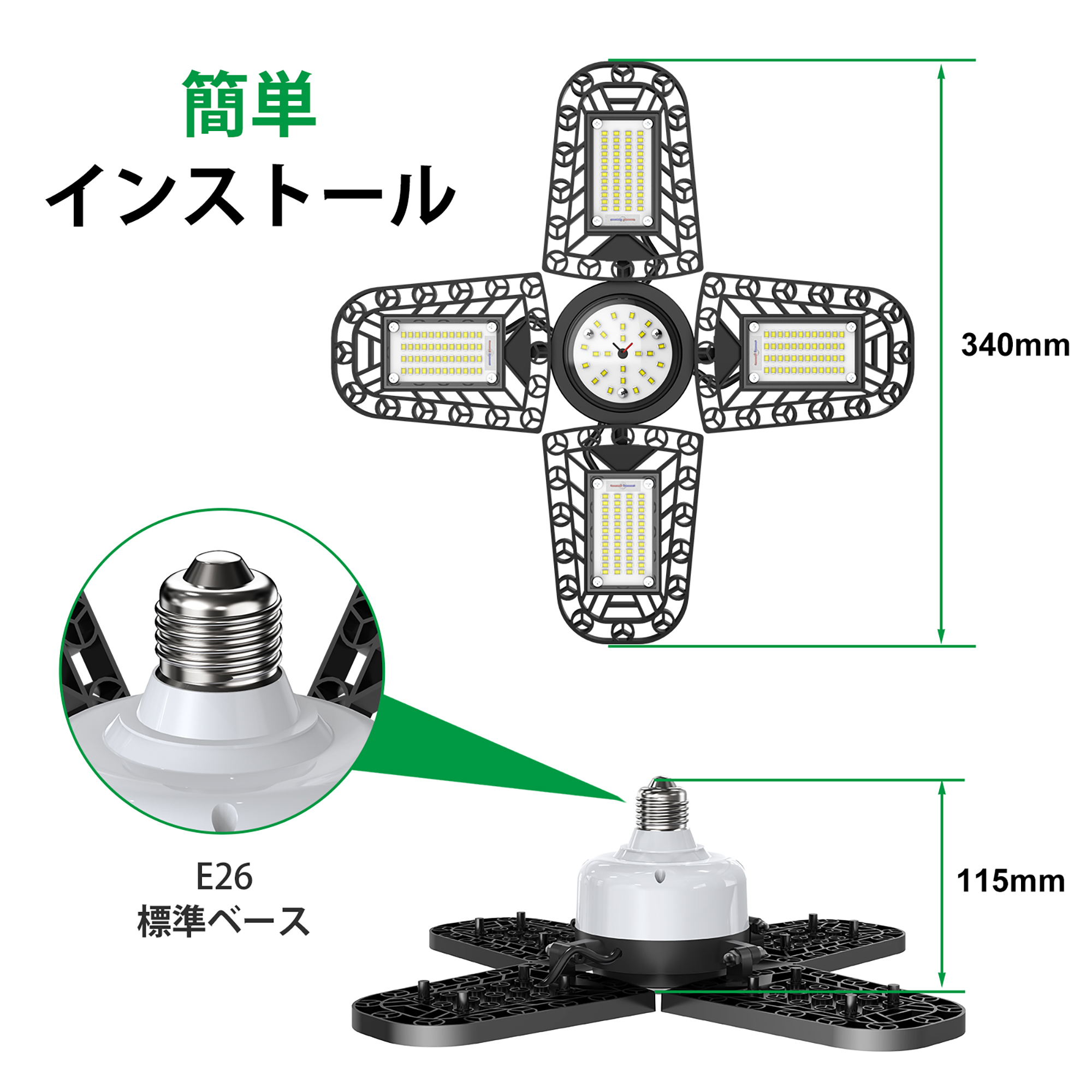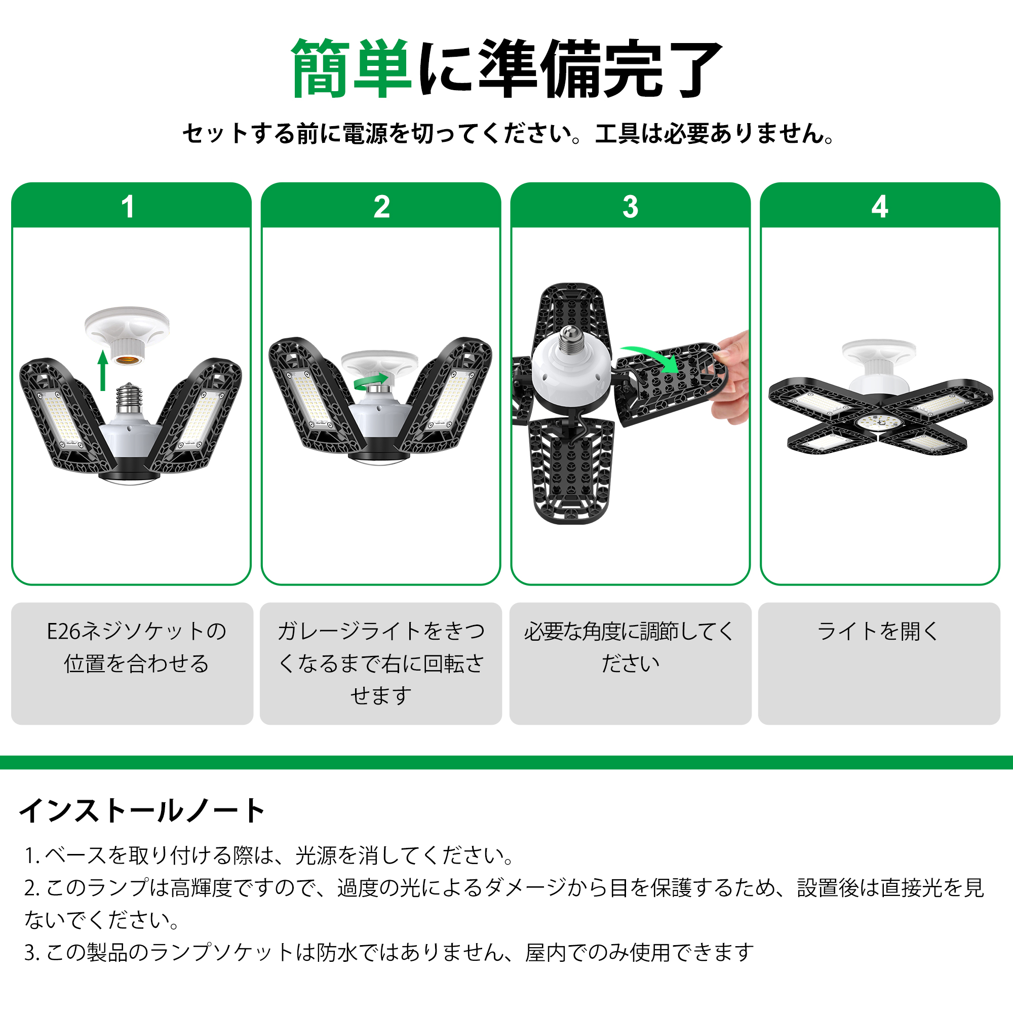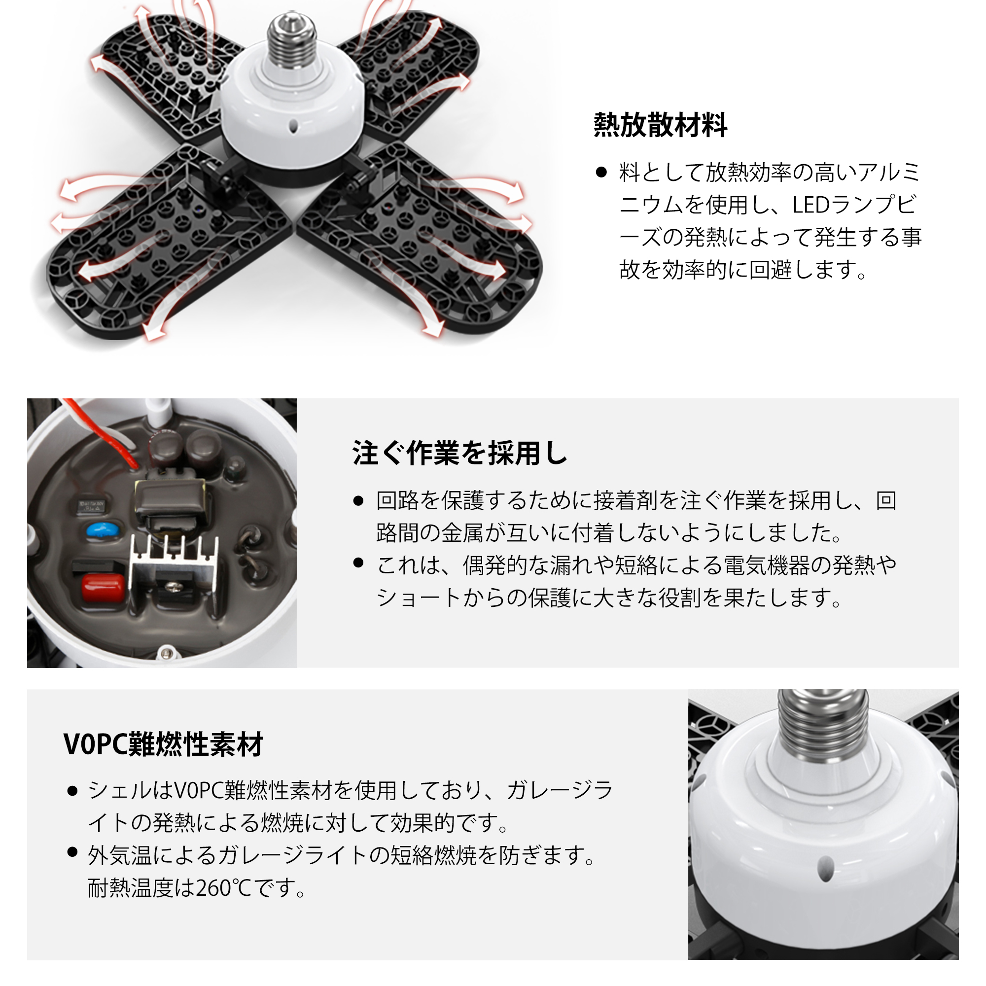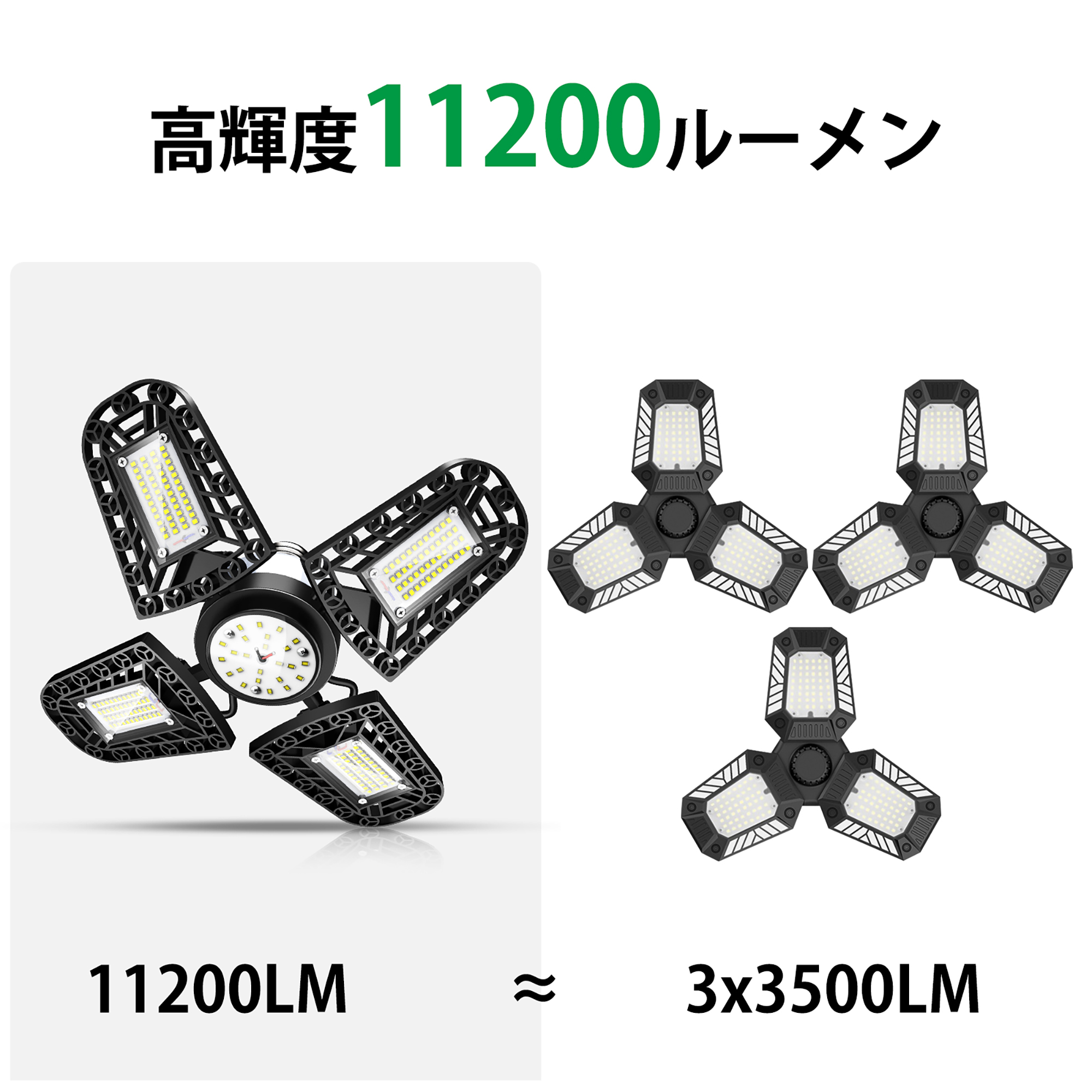 ledライト ガレージライト スーパー 高輝度216ランプビーズ 11200ルーメン 5灯式 80W電力50照射範囲 国際認証安全IP65防塵 アルミニウム放熱 色温度6000k
