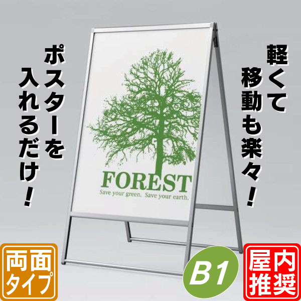 屋内用両面ポスタースタンド/B1 立て看板 A型 おしゃれ スタンド デザイン 駐車場 店舗 両面 メッセージボード