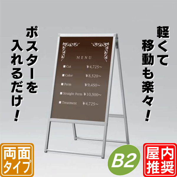 屋内用両面ポスタースタンド/B2 立て看板 A型 おしゃれ スタンド デザイン 駐車場 イラスト 店舗 両面 メッセージボード
