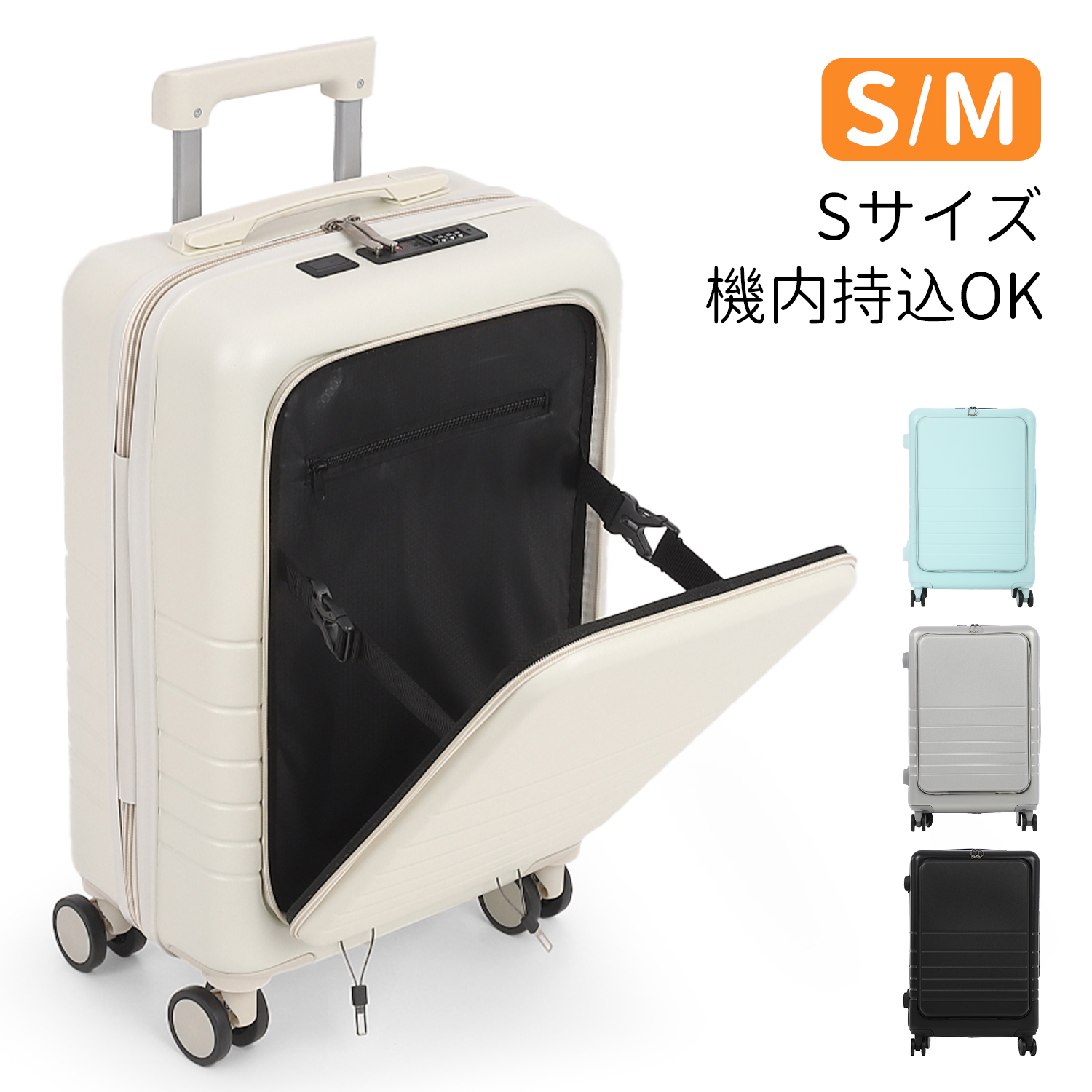 ボディ材質 | PC(ポリカーボネート)+ABS樹脂【フロント部分が開けられるフロントオープンポケット搭載】 フロントポケットにPC収納ポケットを装備、旅の途中でもMサイズはフロントポケットから16.5 インチまでのPC・書類・ビジネスツールを簡単に取り出す事ができます。 機内持ち込みに対応し、1〜3泊程度の旅行に適したサイズで、ビジネスシーンにも活躍しています。 |