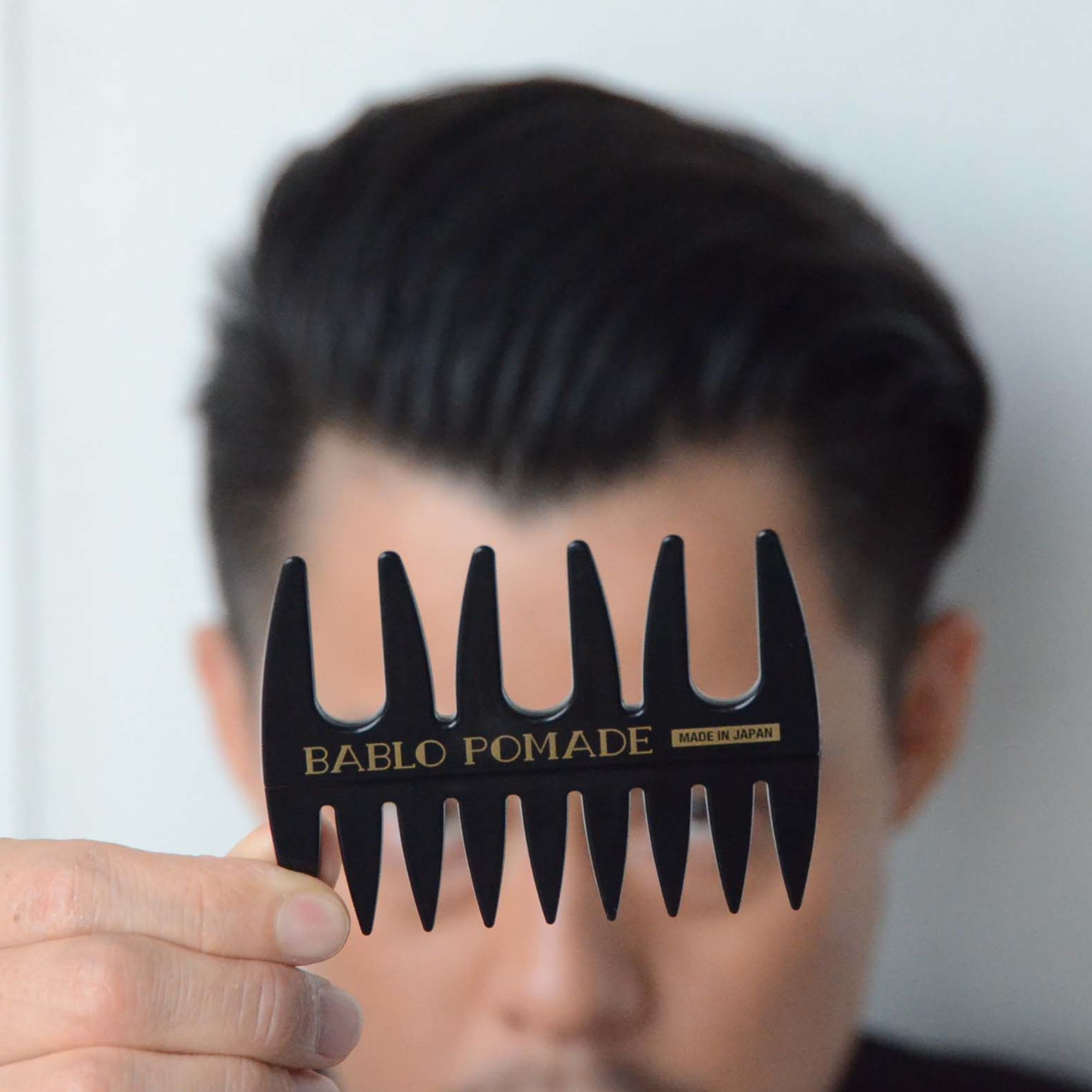【国産ポマードブランド】MADE IN JAPANのポマードブランド“BABLO POMADE”のメッシュコーム。ポマードでのスタイリングのお供として使えるようクラシカルなデザインに仕上げました。
