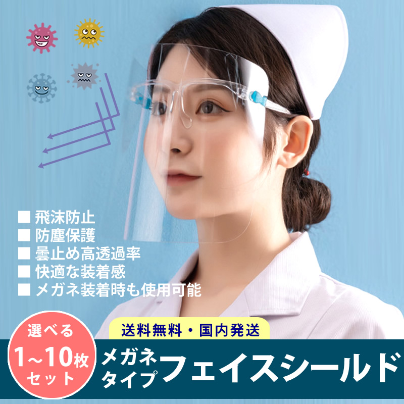 フェイスシールド メガネ型 メガネタイプ フェイスガード ウイルス対策 飛沫防止 歯科 医療 飛沫対策 くもり止め 曇らない