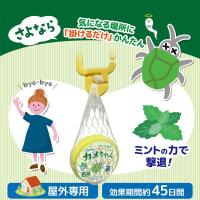 ご使用方法 | 1.本品を外装袋より取り出してください。 2.白色ネットより取り出し、本品のビニール袋を外し、再度白色ネットに入れてください。 3.害虫が気になる部分に掛けてご使用ください。 ※2週間以上、継続してご使用ください。 ※約2ヶ月で新しいものに交換してください。 |