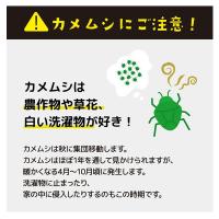 商品説明 | 気になる場所に「掛けるだけ」かんたん。ミントの力で撃退!大切なお花や洗濯物を守り家に侵入させない。屋外専用のカメムシ忌避剤。 |